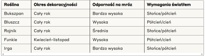 Rośliny zimozielone i mało wymagające